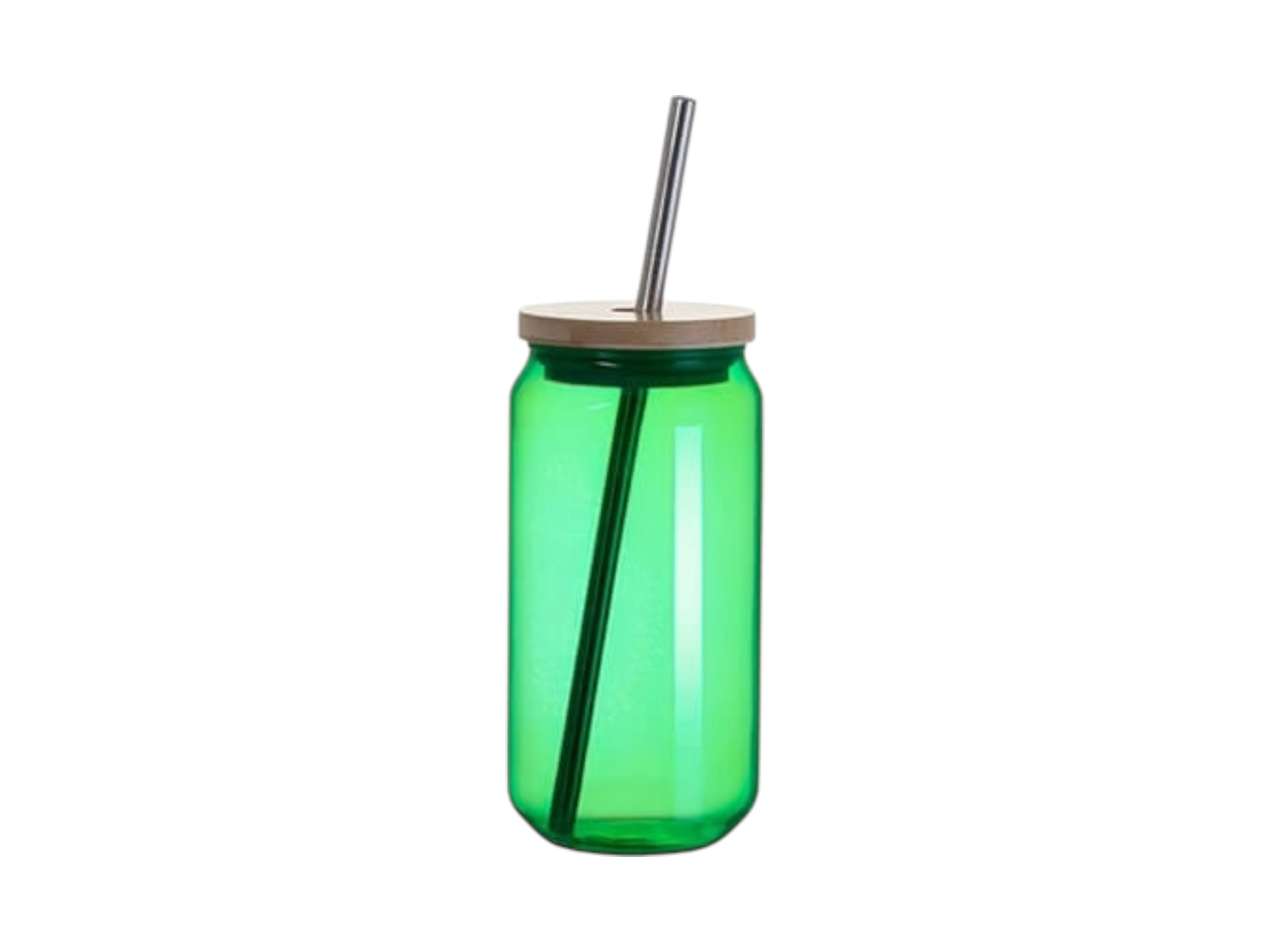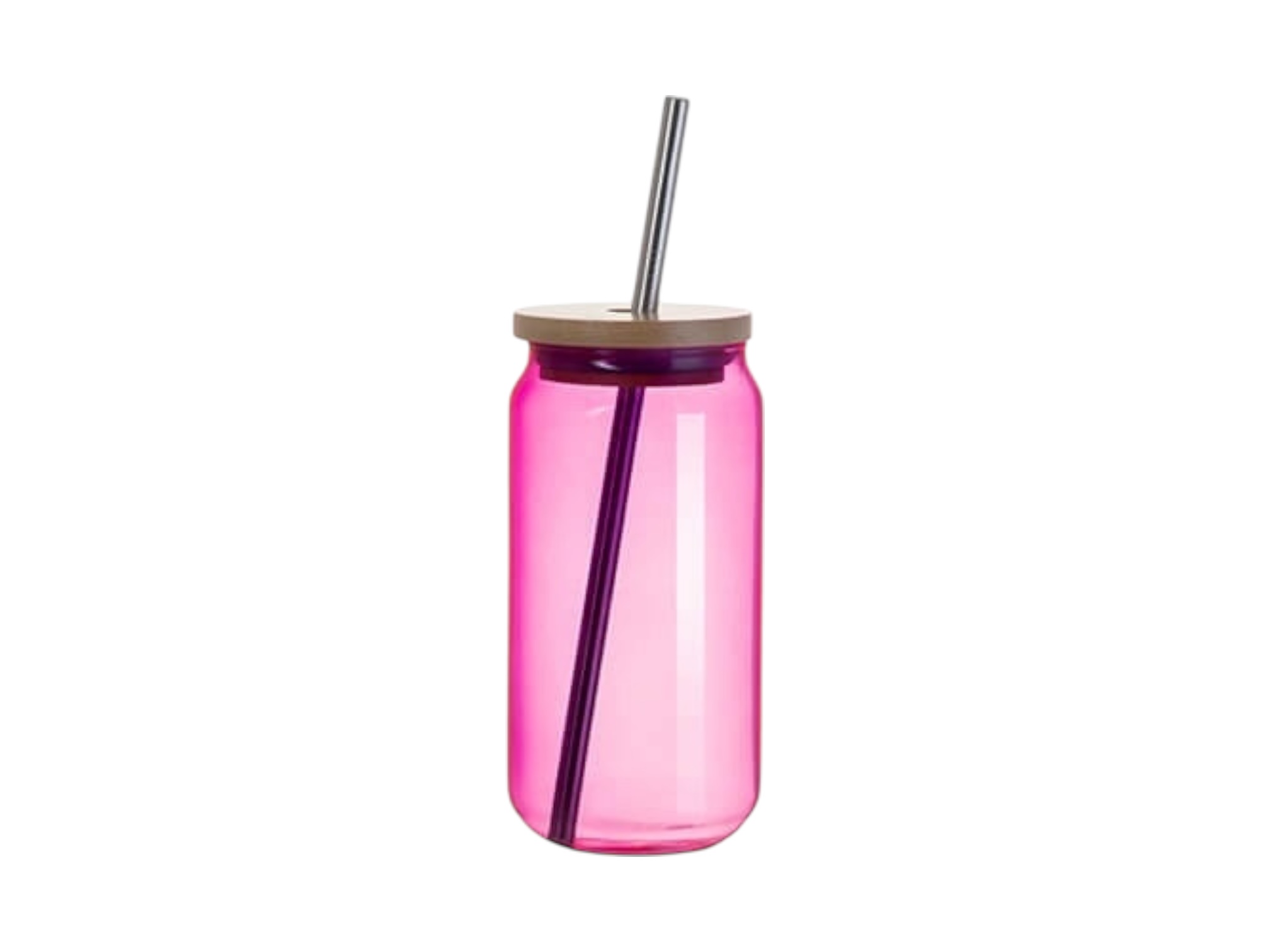 Nowoczesna i ekologiczna butelka wykonana z przezroczystego, kolorowego szkła, wyposażona w bambusową pokrywkę oraz metalową słomkę wielokrotnego użytku. To idealne rozwiązanie dla osób dbających o środowisko, a jednocześnie lubiących praktyczne i stylowe gadżety.
