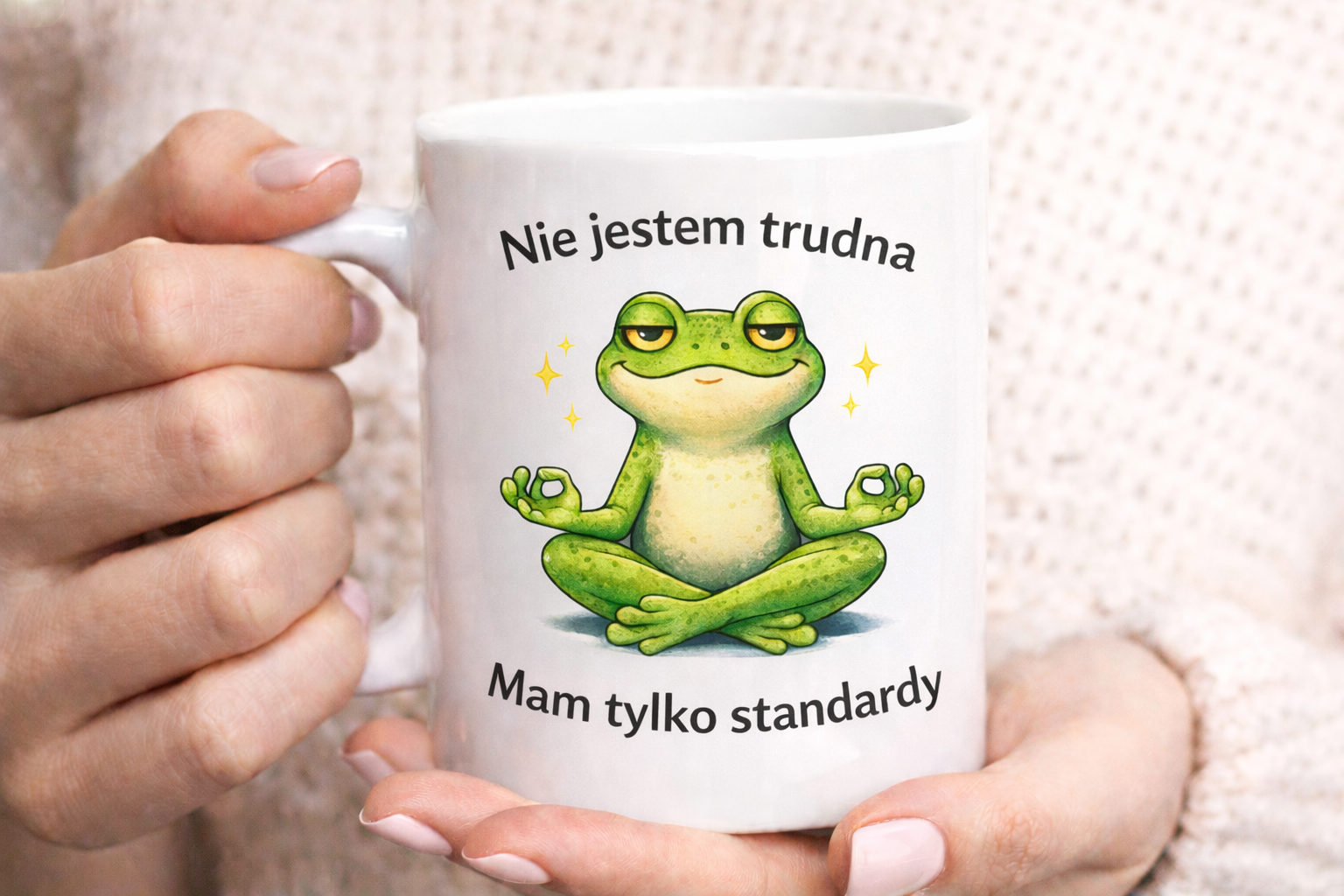 Kubek z żabą świetnie sprawdzi się w domu, w pracy lub jako prezent dla kogoś z poczuciem humoru. Wyraźna grafika i trwały nadruk sprawiają, że kubek przyciąga uwagę i poprawia humor przy każdej kawie czy herbacie.