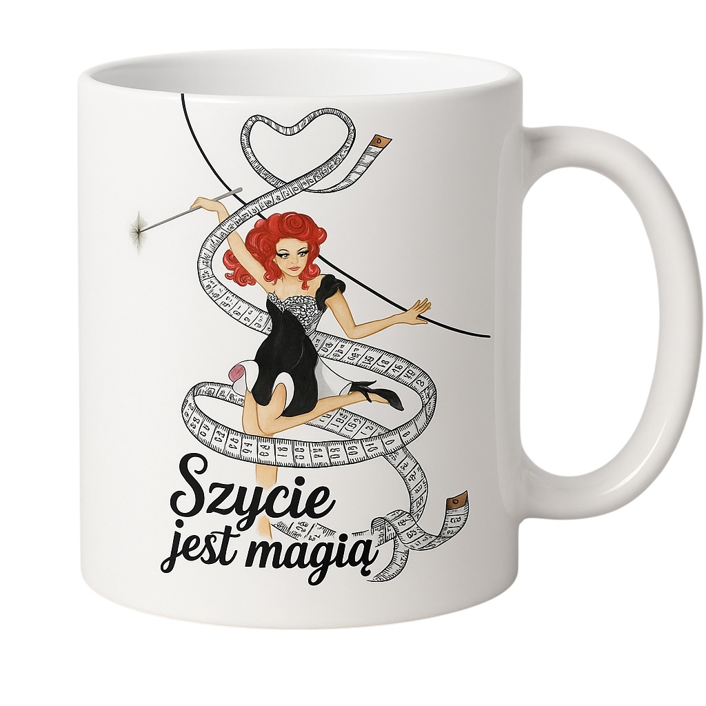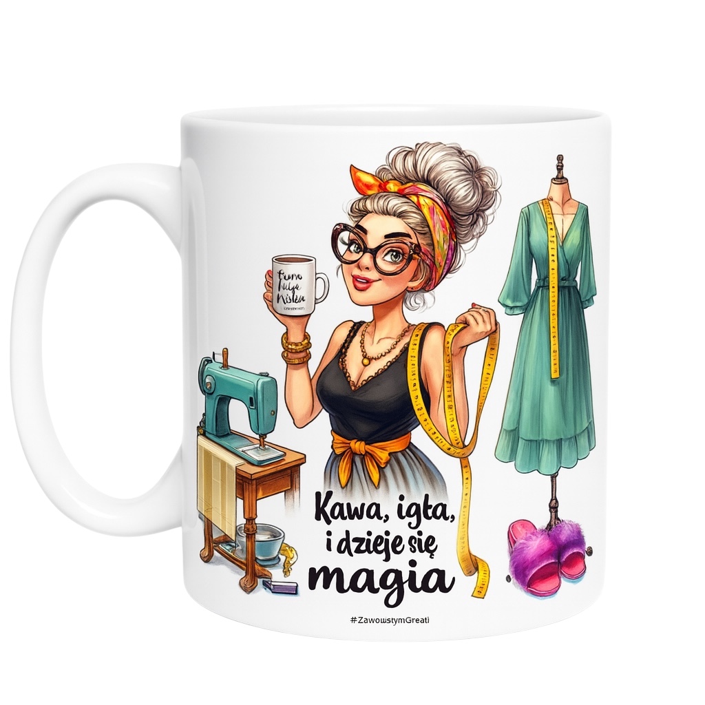 Kawa, igła i dzieje się magia – kubek dla krawcowej