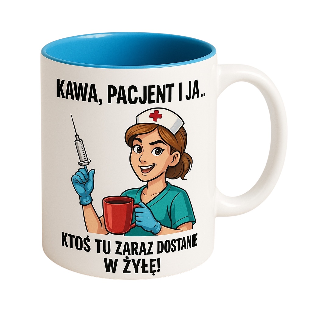 Kawa, pacjent i ja… ktoś tu zaraz dostanie w żyłę! – kubek dla pielęgniarki / ratowniczki