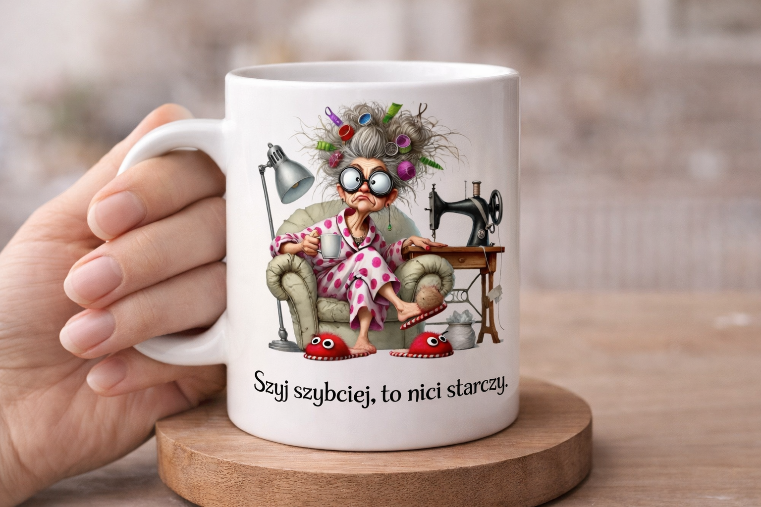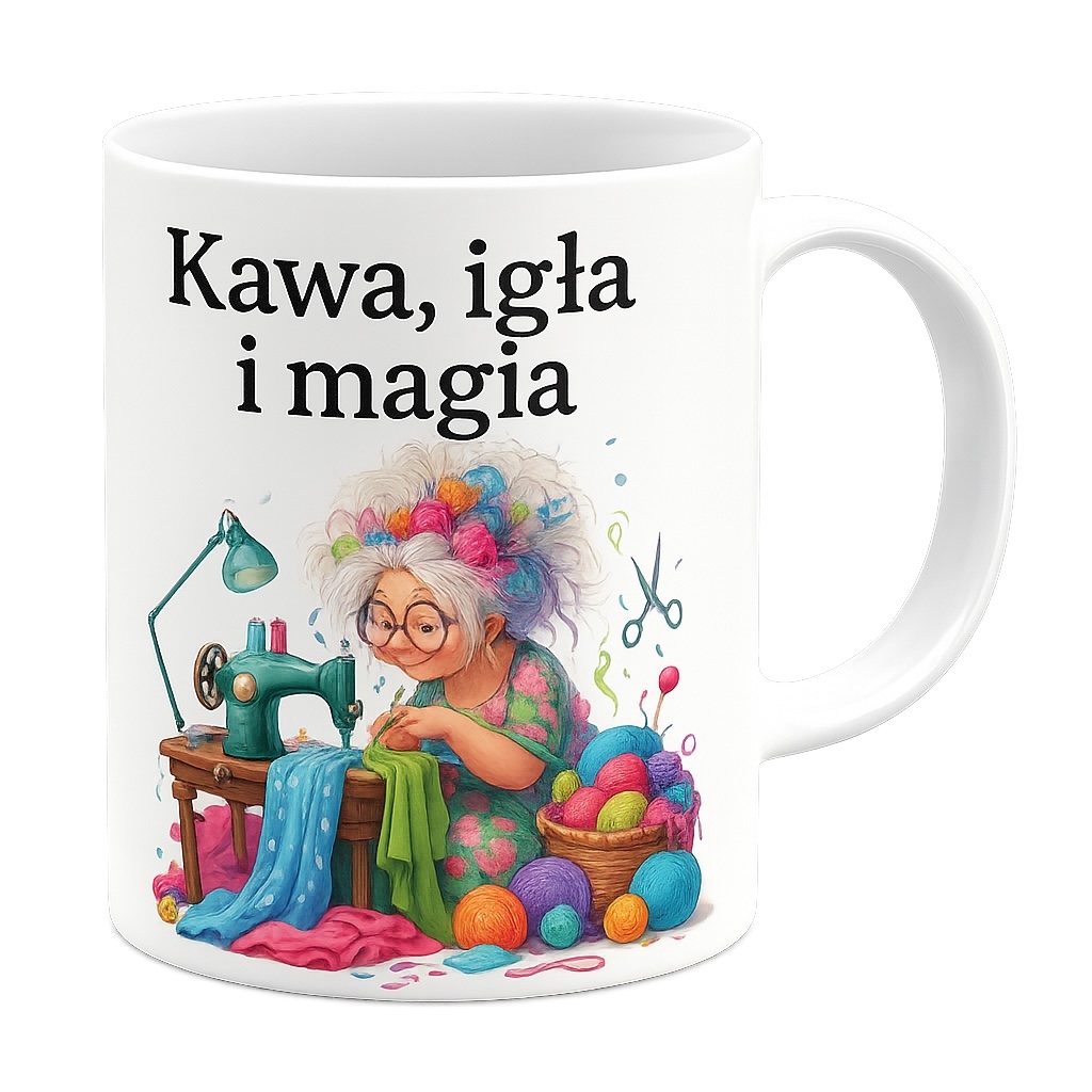 Kawa, igła i magia – kubek dla miłośniczki szycia