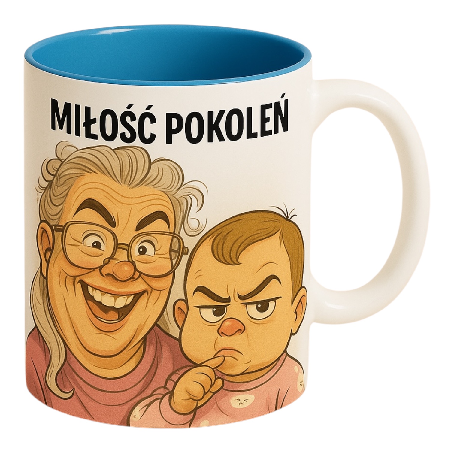 „Miłość pokoleń” – personalizowany kubek z karykaturą ze zdjęcia