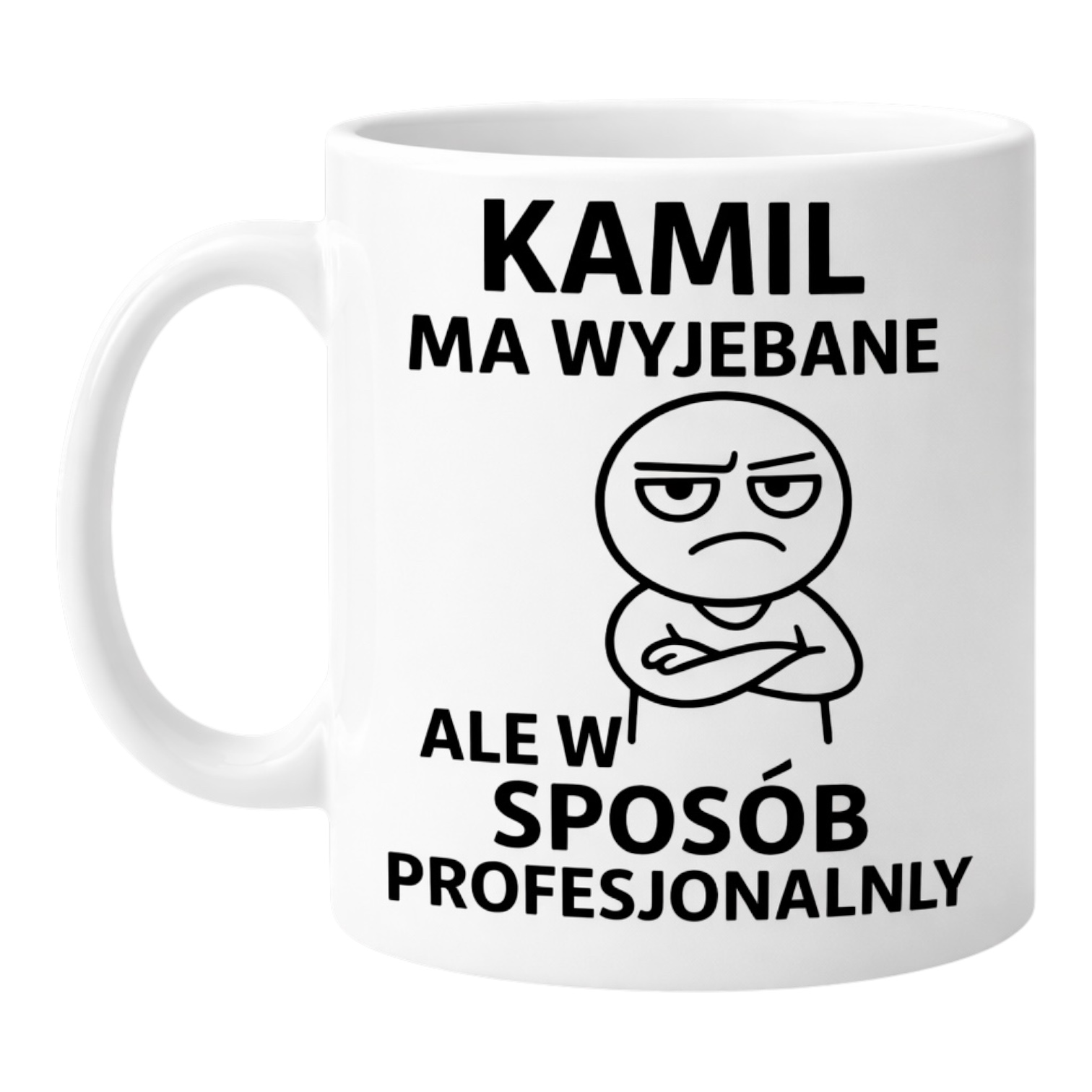 „Kamil ma wyjebane – ale w sposób profesjonalny” – kubek z charakterem (personalizowany)