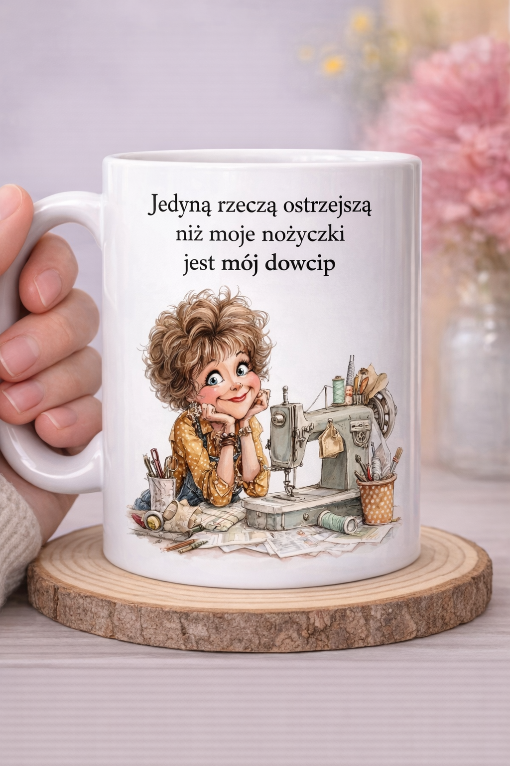 Kubek „Jedyną rzeczą ostrzejszą niż moje nożyczki jest mój dowcip”
