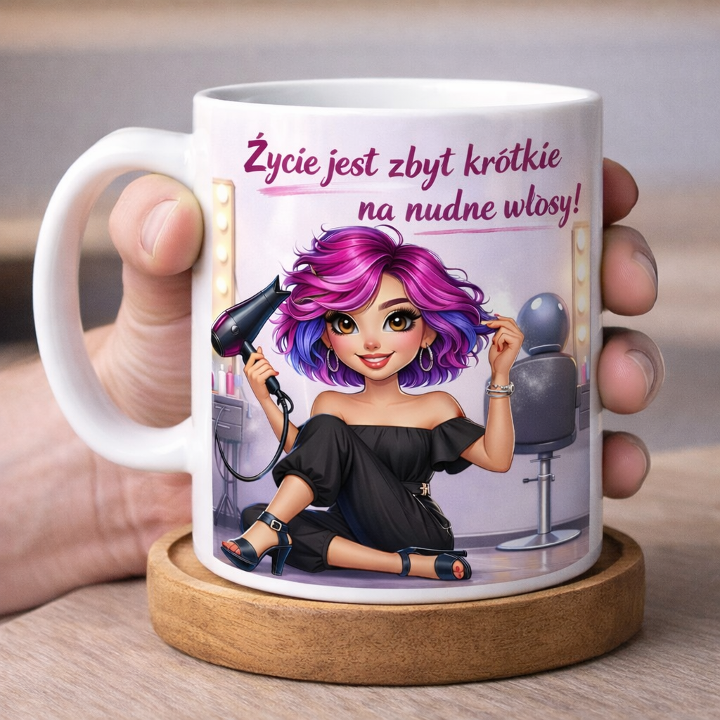 Kubek „Życie jest zbyt krótkie na nudne włosy!''